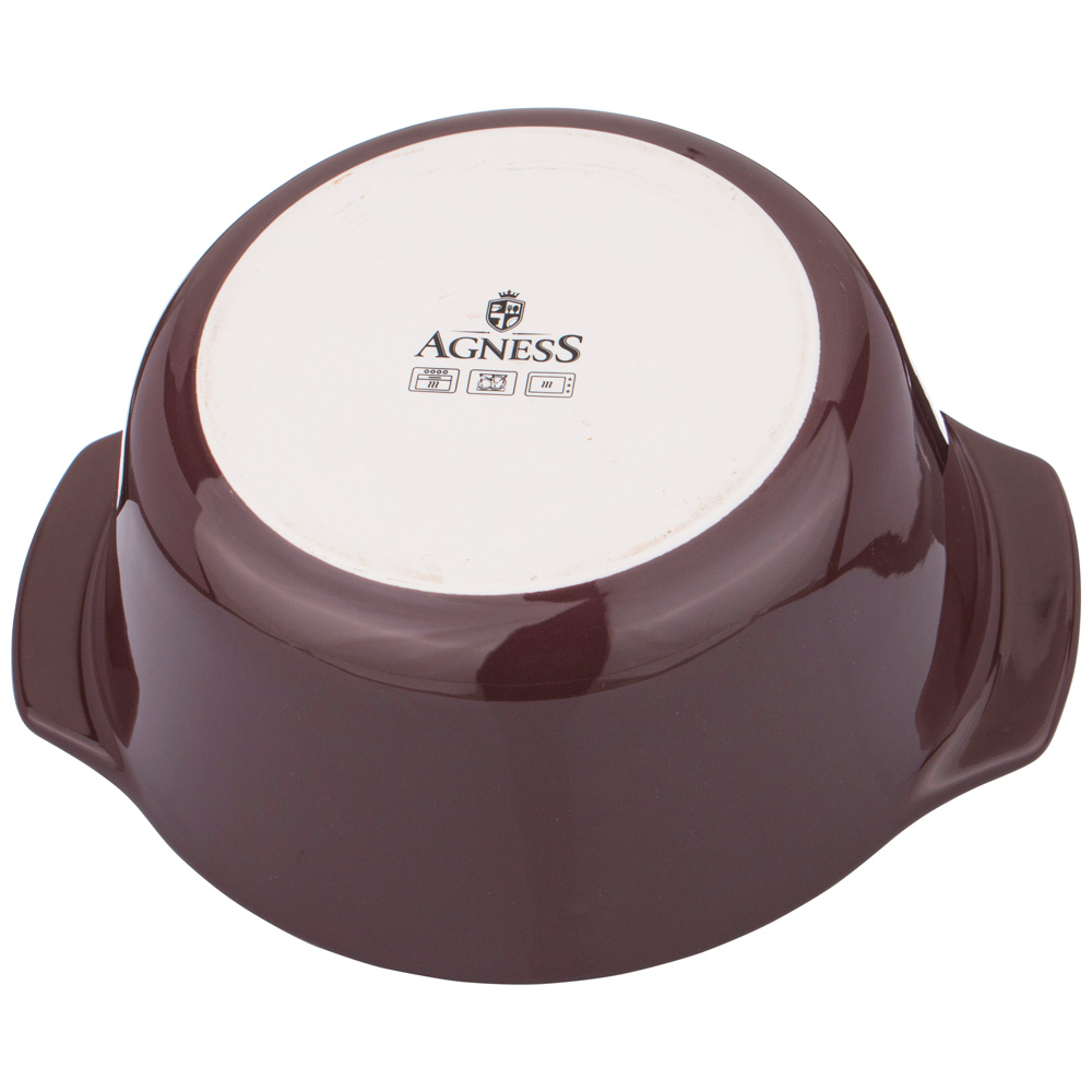 Коллекция посуды для запекания Agness из жаропрочного фарфора стильная и современная, экологичная, химически инертная, стойкая к механическим повреждениям. Все изделия обладают повышенной термостойкостью и с лёгкостью выдерживают нагревание до 380 градусов. Благодаря своей низкой теплопроводности, формы для запекания способны длительное время поддерживать в горячем виде приготовленные блюда. Овальные и круглые формы со стеклянными жаропрочными крышками и без, порционные кокотницы с фарфоровыми крышками функциональны и хороши как для приготовления, так и для подачи и сервировки стола. Все изделия сертифицированы и безопасны для контакта с пищей. Можно смело мыть в посудомоечной машине, ставить в микроволновую печь и духовой шкаф. Избегайте резких перепадов температур! Нельзя ставить в раскаленную духовку, блюдо должно нагреваться постепенно! Выбирайте соответствующие рецепты и изделия прослужат длительное время.