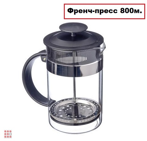 Френч-пресс из нержавеющей стали и стекла, объемом 800мл. Хорошо впишется в любой интерьер. Легкий, прочный. Удобный в применении.
