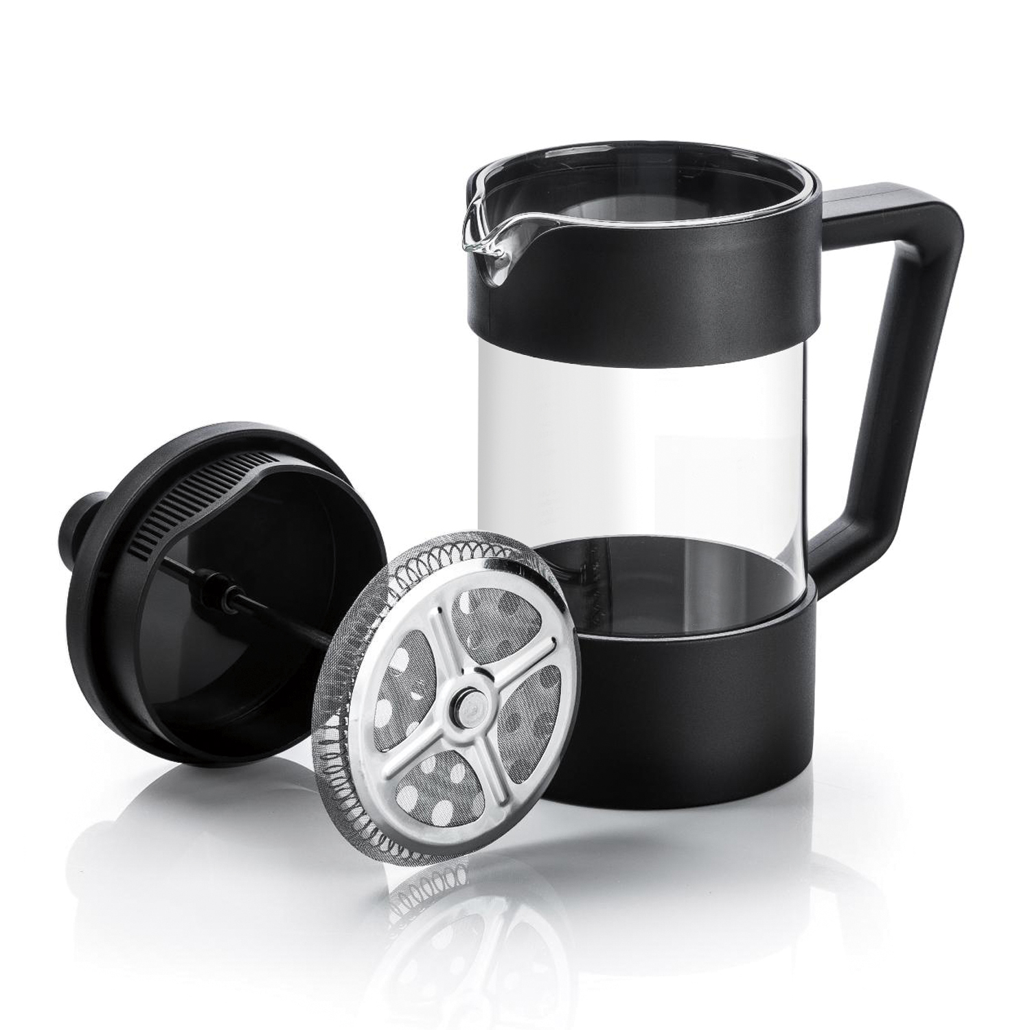 Материал: термостойкое боросиликатное стекло, высококачественная нержавеющая сталь 18/10, пищевой пластик (PP). Утолщенный ободок колбы повышает прочность и продлевает срок службы изделия. Форма края носика препятствует образованию подтеков. Удобная ненагревающаяся бакелитовая ручка. Усовершенствованный пресс-механизм: навитая пружина способствует более плотному прилеганию краев фильтра к стенкам колбы и предохраняет его от деформации. Оптимальный размер ячеек фильтра обеспечивает идеальную фильтрацию напитка. Разборная конструкция пресс-фильтра облегчает уход за изделием.