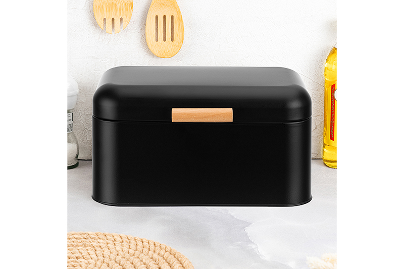 Хлебница Elan Gallery "Черная" размером 30,5х20,7х16,1 см выполнена из металла и поможет сохранить хлеб и булочки вкусными и свежими. Металлическая хлебница имеет удобную деревянную ручку и выполнена в стильном дизайне. Посуда из металла не впитывает запахи, держит температуру, предотвращает попадание влаги, а значит – защитит продукты от плесени. Настольная хлебница надежно закрывается металлической крышкой. Ёмкость можно приспособить не только под хлеб, но и для хранения пакетов с крекерами, печеньем, сухарями. Не рекомендуется применять абразивные моющие средства. Не подходит для использования в посудомоечной машине и микроволновой печи. Поставляется в картонной коробке. Металлическая хлебница подойдёт в подарок любой хозяйке. Такая посуда станет настоящим украшением вашей кухни и поможет создать в доме порядок и уют! /