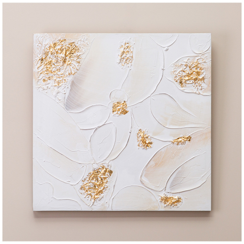 КАРТИНА "АБСТРАКЦИЯ ЗОЛОТО НА БЕЛОМ" 60Х60Х3 СМ