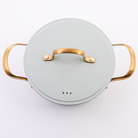 Представьте себе кухню, где царит порядок, и готовка превращается в настоящее удовольствие. Центральное место на ней занимает эта элегантная алюминиевая кастрюля, воплощение качества и практичности. Её основа – высококачественный кованый алюминий, материал, известный своей исключительной прочностью и способностью равномерно распределять тепло по всей поверхности. Это означает, что ваши блюда будут готовиться идеально, без "горячих пятен" и подгорания, при этом сохраняя все свои полезные свойства. Забудьте о постоянном помешивании и тревоге за пригорание пищи. Отличительной чертой этой кастрюли являются изящные золотистые ручки, изготовленные из высококачественной нержавеющей стали. Они не только придают изделию роскошный, элегантный вид, гармонично вписывающийся в любой кухонный интерьер, будь то классический или современный стиль, но и обеспечивают максимальный комфорт при использовании. Даже когда кастрюля раскалена до предела, ручки остаются приятно прохладными на ощупь, что исключает риск ожогов. Это особенно важно, когда вы готовите сложные блюда, требующие постоянного вмешательства. Внутреннее покрытие кастрюли – это трёхслойное мраморное антипригарное покрытие, настоящая находка для любителей здорового питания. Благодаря нему, пища не прилипает к стенкам, что позволяет готовить с минимальным количеством масла или вовсе без него. Это снижает калорийность блюд и сохраняет их естественный вкус и аромат. Представьте себе нежные омлеты, сочные тушеные овощи, или ароматный соус, которые легко отделяются от стенок, не оставляя после себя ни единого следа. Мытье такой кастрюли становится простым и быстрым делом. Внешнее покрытие кастрюли также заслуживает отдельного упоминания. Это специальное жаропрочное покрытие, предназначенное для защиты от высоких температур и механических повреждений. Оно сохранит безупречный внешний вид вашей кастрюли на протяжении многих лет, не позволяя ей деформироваться или утратить свой блеск. Даже после длительного использования, кастрюля будет выглядеть так же прекрасно, как в день покупки. И наконец, нельзя не отметить удобство использования этой кастрюли. Она полностью пригодна для мытья в посудомоечной машине, что значительно экономит ваше время и силы. Вам не придётся тратить драгоценные минуты на трудоёмкое оттирание пищи. Просто поместите кастрюлю в посудомоечную машину, и она будет готова к следующему использованию в кратчайшие сроки. В итоге, эта кастрюля – это не просто кухонный инвентарь, а настоящий помощник, который сделает ваш кулинарный опыт более приятным и эффективным. Её превосходное качество, стильный дизайн и практичность делают её идеальным выбором для тех, кто ценит комфорт, качество и долговечность. Она станет незаменимым элементом вашей кухни на долгие годы, радуя вас своим безупречным видом и функциональностью. От супов и соусов до тушеных блюд и мяса - эта кастрюля справится с любой задачей, делая процесс готовки легким и приятным.