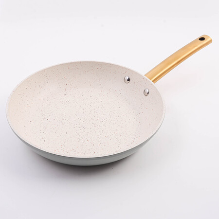 Сковорода станет вашим надёжным помощником на кухне, благодаря своим неповторимым особенностям и стильному дизайну. Удобная бакелитовая ручка и универсальность обеспечивают идеальное прилегание к различным типам плит: газовым, индукционным, электрическим, керамическим, галогенным. Внутри посуды 3-х слойное антипригарное покрытие из мраморной крошки, а снаружи жаропрочное покрытие, которые обеспечивают идеальное распределение тепла, предотвращают прилипание пищи и гарантирует, что каждое ваше блюдо будет иметь превосходный вкус и вид. Откройте для себя универсальность нашей сковороды антипригарной! Она идеально подходит для жарки и тушения, позволяя создавать разнообразные кулинарные шедевры. Высокие стенки сковороды 26 см позволяют тушить овощи и мяско, сохраняя их сочность и аромат. Толстое индукционное дно толщиной 3,2 мм позволяет готовить любые блюда, от нежных стейков до ароматных котлет, получая каждый раз безупречный результат. Эргономичная металлическая ручка не нагревается и не скользит в руке, обеспечивая комфорт и безопасность в процессе готовки. Легкость ухода порадует любую хозяйку: после использования достаточно просто смахнуть остатки еды салфеткой или протереть губкой, она легко моется под струей воды и подходит для мытья в посудомоечной машине. Сковородка устойчива к деформациям, не теряет своих антипригарных свойств и служит долго, что делает их надежным выбором для ежедневного использования. С этой уникальной сковородой для индукционной плиты каждая ваша трапеза станет настоящим праздником вкуса. Она станет прекрасным подарком для любой ценительницы качества и комфорта на кухне. С нашей посудой для кухни ваши кулинарные эксперименты станут удивительными и незабываемыми.