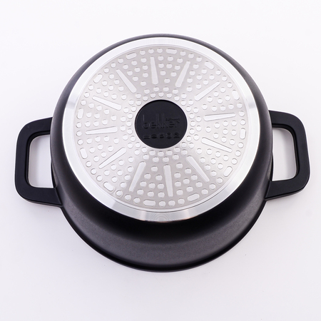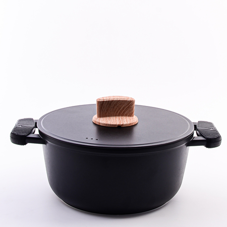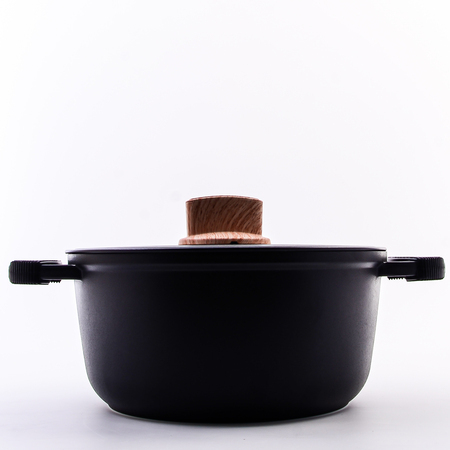 Кастрюля с крышкой идеальна для кулинарных шедевров! Эта стильная и функциональная кастрюля станет незаменимым помощником на вашей кухне. Изготовленная из прочного литого алюминия, она обеспечивает превосходное распределение тепла и долгий срок службы. Литой алюминий — залог долговечности и равномерного нагрева. Литые алюминиевые ручки с силиконовыми прихватками гарантируют комфортный и безопасный захват даже при высоких температурах. Литая алюминиевая крышка плотно прилегает к краям кастрюли, сохраняя тепло и аромат блюд. Удобная ручка крышки с покрытием Soft touch под дерево добавляет элегантности. Классическая круглая форма подходит для приготовления самых разных блюд, а элегантный черный цвет прекрасно впишется в любой кухонный интерьер. Внутреннее 3-слойное мраморное антипригарное покрытие черного цвета предотвращает пригорание пищи и облегчает чистку. Жаропрочное внешнее покрытие обеспечивает устойчивость к высоким температурам и сохраняет привлекательный внешний вид кастрюли на долгое время. Эта кастрюля – идеальный выбор для тех, кто ценит качество, функциональность и стиль в кухонной утвари. Благодаря своим характеристикам, она станет вашим надежным помощником в создании кулинарных шедевров любой сложности. Почувствуйте себя настоящим шеф-поваром, экспериментируя с рецептами и техниками приготовления. С этой кастрюлей вы сможете тушить, варить, томить и даже обжаривать продукты, добиваясь идеальных результатов каждый раз. Равномерный нагрев и антипригарное покрытие позволят вам готовить с минимальным количеством масла, сохраняя полезные свойства продуктов. Кастрюля подходит для использования на всех типах плит, включая индукционные. Уход за кастрюлей не потребует от вас много времени и усилий. Просто поместите ее в посудомоечную машину, и она снова будет готова к новым кулинарным приключениям. Или же вы можете легко очистить ее вручную с помощью мягкой губки и моющего средства. Приобретая эту кастрюлю, вы получаете не просто кухонную утварь, а надежного помощника, который будет вдохновлять вас на создание вкусных и полезных блюд каждый день. Наслаждайтесь процессом приготовления и удивляйте своих близких кулинарными шедеврами!