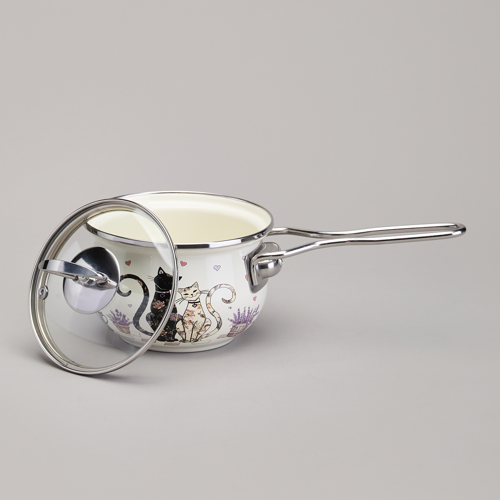 КОВШ ЭМАЛИРОВАННЫЙ СЕРИЯ "LAVENDER CATS" 0,9Л, ДИА 14 СМ