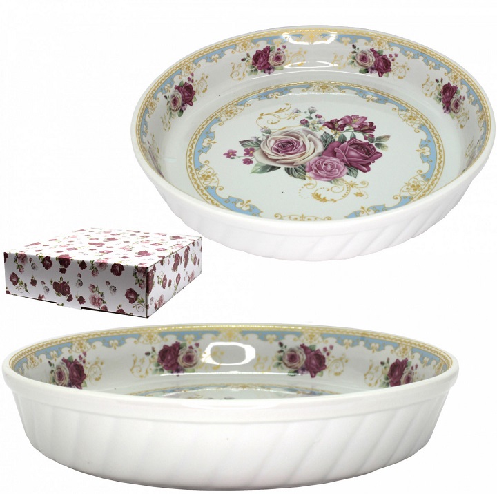 Представленное блюдо для выпечки Мечтасоздано из особо прочного фарфора. Позволяет запекать разные виды продуктов в оптимальных условиях, сберегая все их полезные свойства и правильные вкусовые качества. Диаметр посуды составляет 33 см, что делает её идеальной для использования в большой семье. Фарфор не только очень прочный, но и отличается чистотой производства. Это отличный вариант для тех, кто хочет создавать настоящие кулинарные шедевры.•Конструкция такой посуды отличается особой прочностью;•имеет приятный дизайн;•не боится сложных условий использования.
