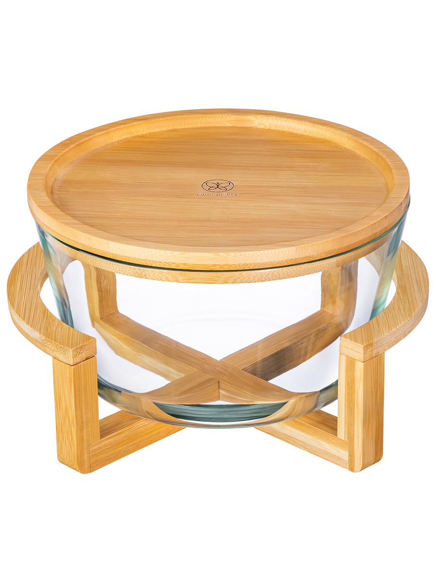 Блюдо для сервировки и запекания 2,6 л 24*21,5*14 см "GLASKRAFT" круглое с бамб. подстав сбамб.крышк