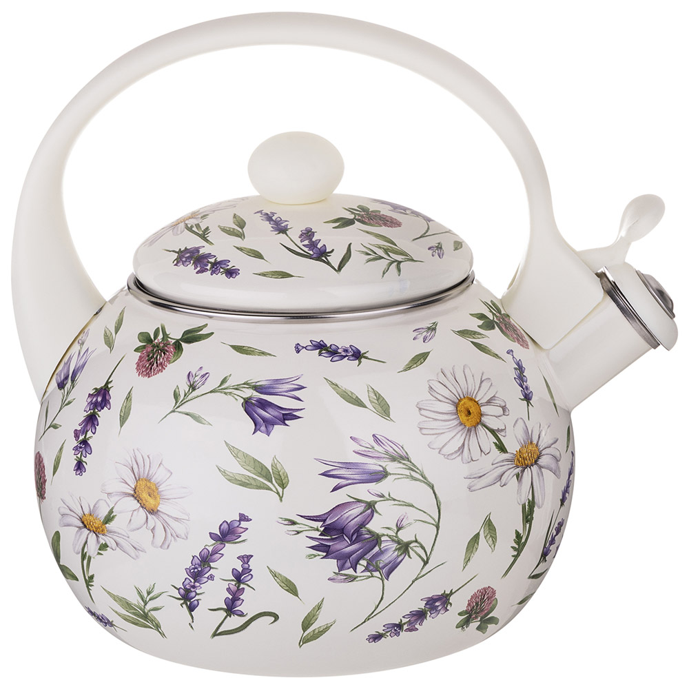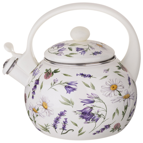 ЧАЙНИК AGNESS ЭМАЛИРОВАННЫЙ СО СВИСТКОМ СЕРИЯ "FLOWER STORY", 2,2 Л