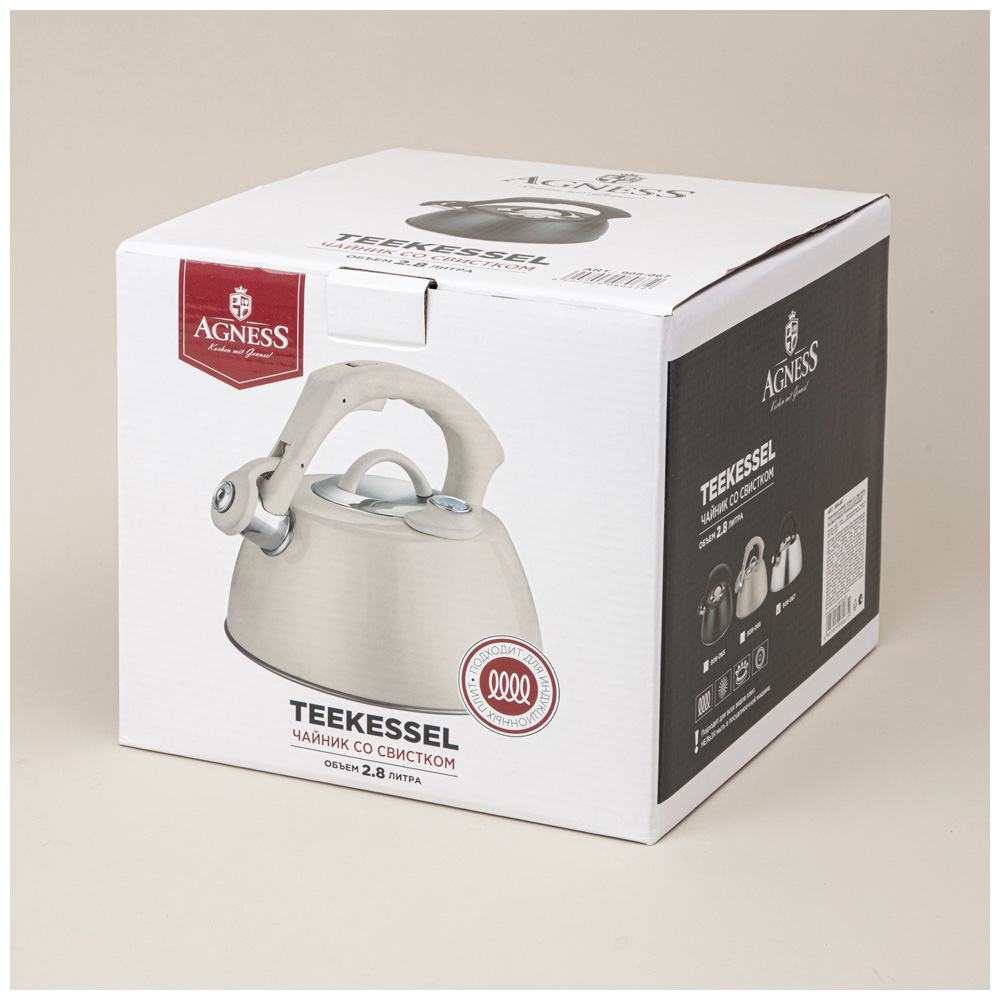 ЧАЙНИК AGNESS СО СВИСТКОМ, 2,80Л ТЕРМОАККУМУЛИРУЮЩЕЕ ДНО,ИНДУКЦИЯ,ВСТРОЕННЫЙ ТЕРМОМЕТР