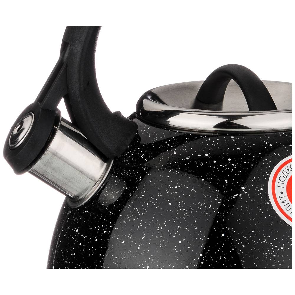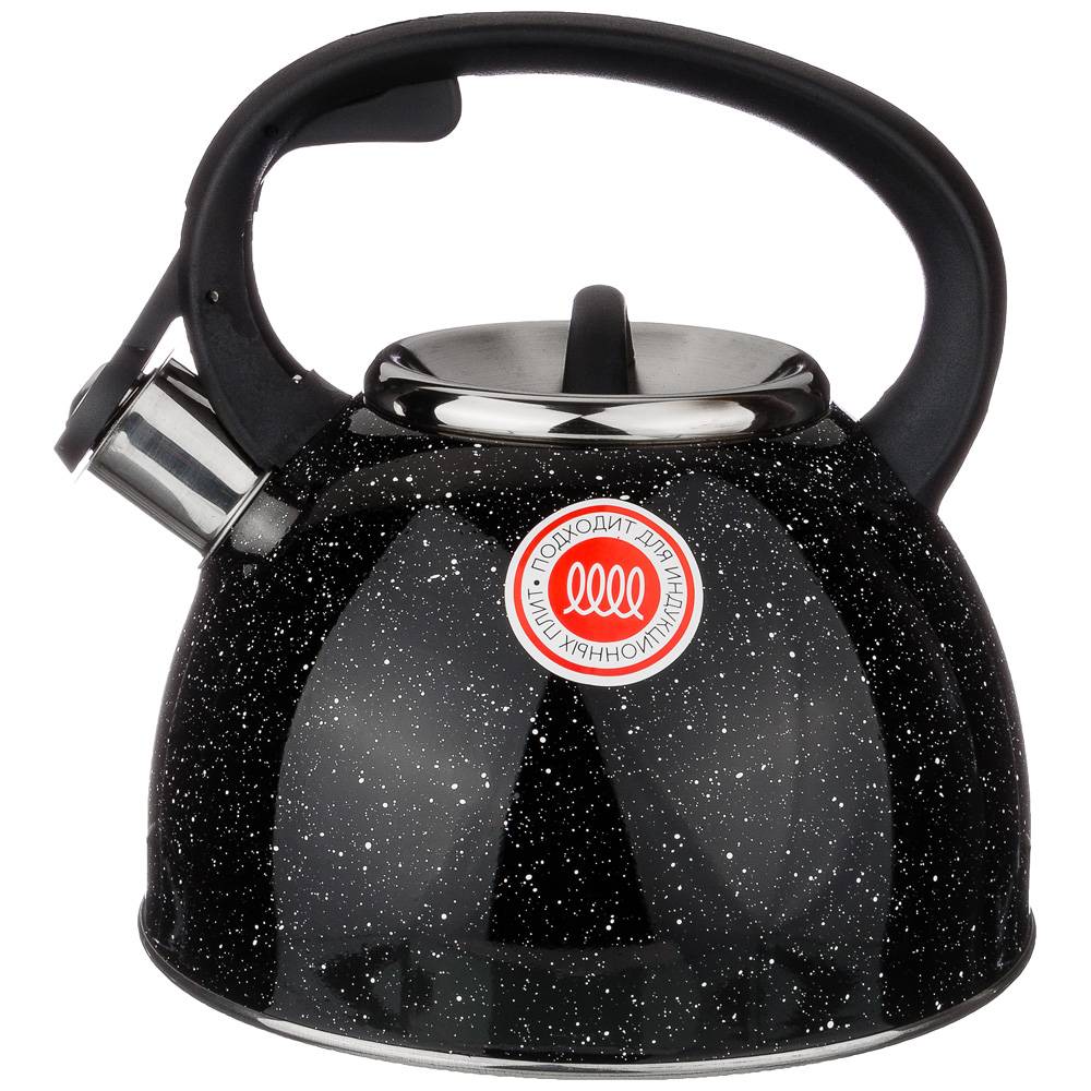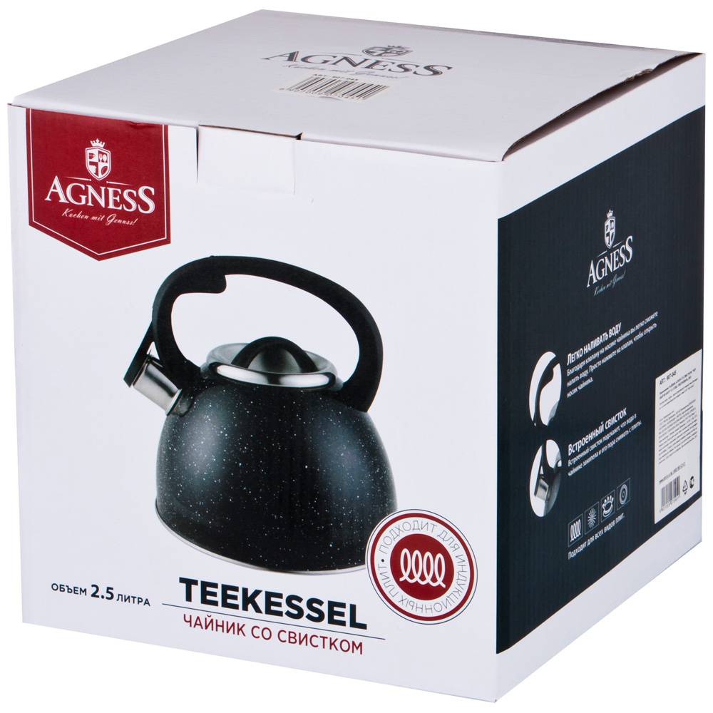 ЧАЙНИК AGNESS СО СВИСТКОМ "ЧЕРНЫЙ МРАМОР" 2,5 Л НЖС, ИНДУКЦИОН. ДНО (КОР=12ШТ.)