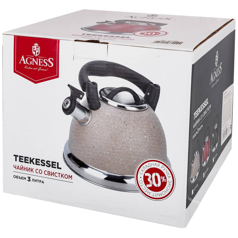 Чайник AGNESS - это надежность, функциональность и стильный дизайн. Чайник выполнен из нержавеющей стали - наиболее прочного и гигиеничного материала. Преимущества:
