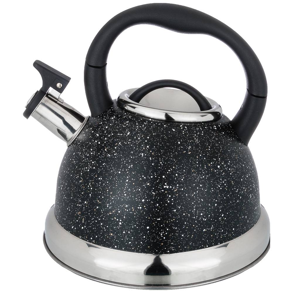 ЧАЙНИК AGNESS СО СВИСТКОМ, СЕРИЯ "BLACK MARBLE"3,0 Л И СКЛАДЫВАЮЩЕЙСЯ РУЧКОЙ, ИНДУКЦ. КАПСУЛЬНОЕ ДНО