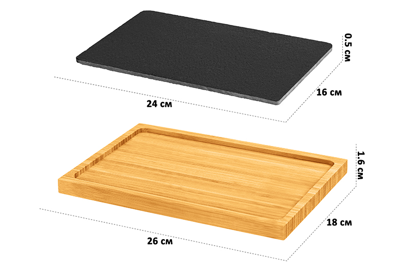 Доска для разделки и сервировки 26*18*1,6 см, бамбук/сланец