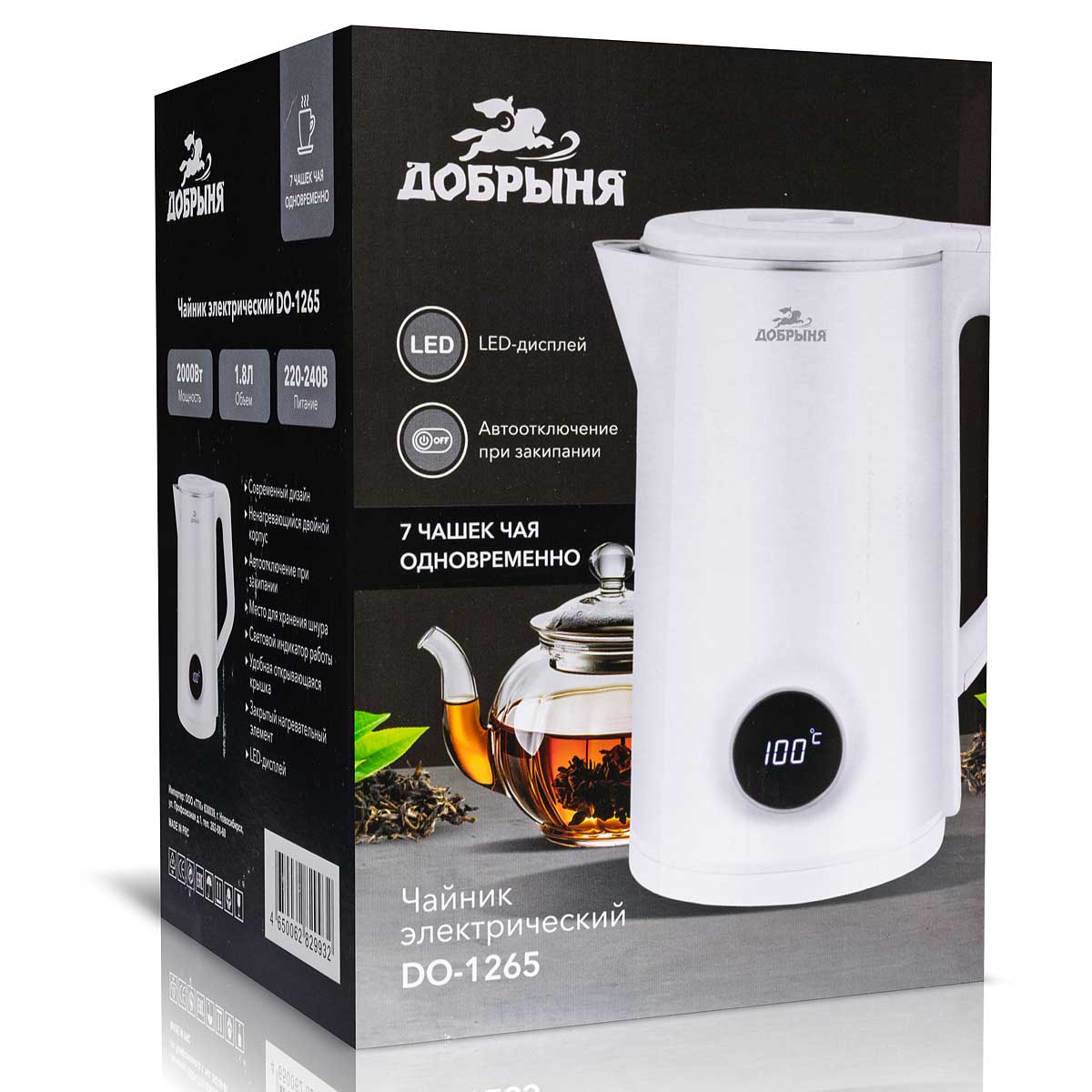 Эл. чайник Добрыня 1,8л 2000Вт пласт. белый DO-1265 с LED дисплеем х12