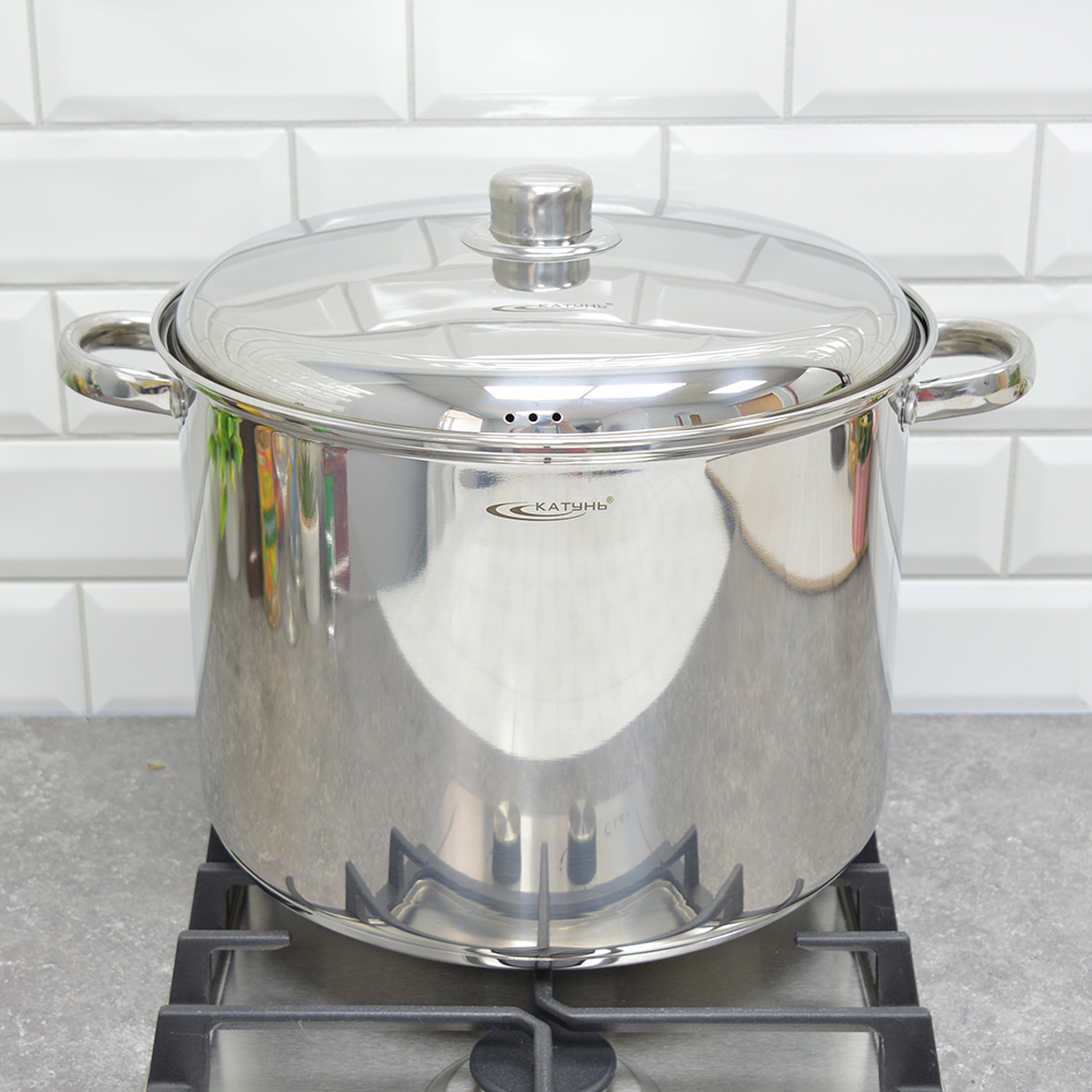 Кастрюля 15л нерж Гретта с металлической крышкой, ТРС