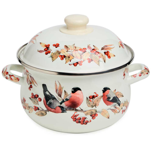 Толщина стенок 0,5ммСтильный и нежный декор эмалированной посуды украсит любую кухню.Высота кастрюли 12 см, диаметр 20 см, диаметр дна 13 см и ширина с ручками 25 см.Заключаем договора по 44 ФЗ, 223 ФЗ