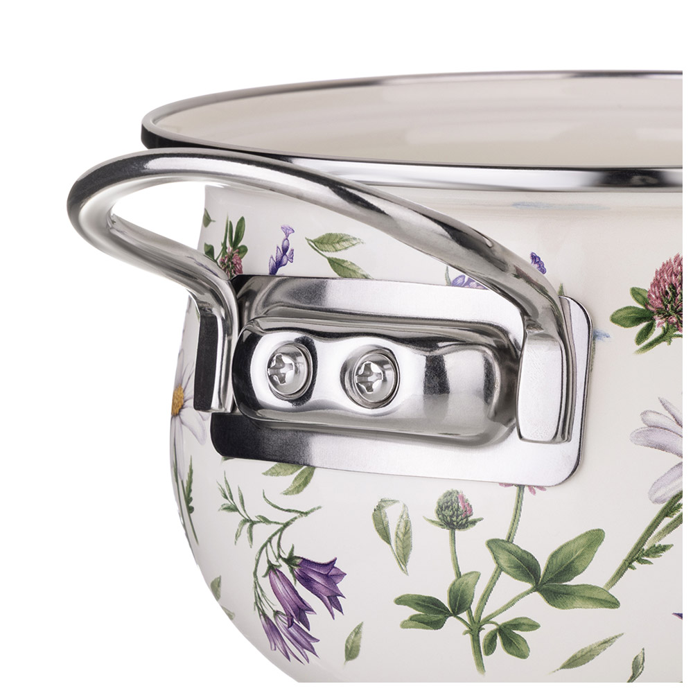 • Стильный и нежный декор эмалированной посуды украсит любую кухню.