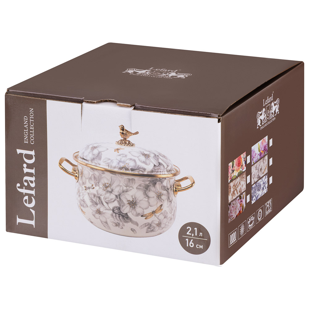 КАСТРЮЛЯ LEFARD ЭМАЛИРОВАННАЯ С КРЫШКОЙ СЕРИЯ ФЛАНДРИЯ, 2,1Л, ДИА.16СМ