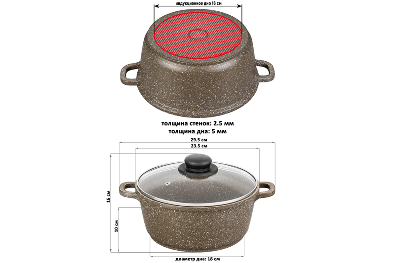 Казан (кастрюля) 3,3 л ГАРМОНИЯ ВКУСА "Коричневый мрамор" ИНДУКЦИЯ, С КРЫШКОЙ ф22, 29,5*23,5*16 см