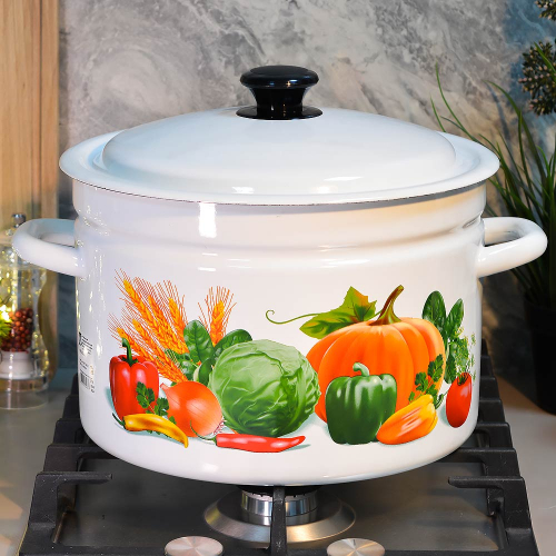 Кастрюля 6л цилиндр. с рисунком подходит для приготовления супов, гарниров или компотов.Качественное эмалированное покрытие безопасно для пищевых продуктов.Кастрюля имеет удобные ручки и металлическую крышку.Подходит для всех типов плит, кроме индукционных.Объем - 6 л.Размер - 27х20х23 см.Заключаем договора по 44 ФЗ, 223 ФЗ
