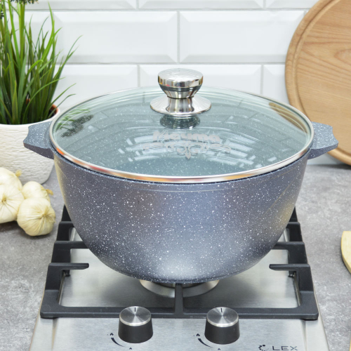 Ковш 1,2л Гранит black с несъемной ручкой и стеклянной крышкой