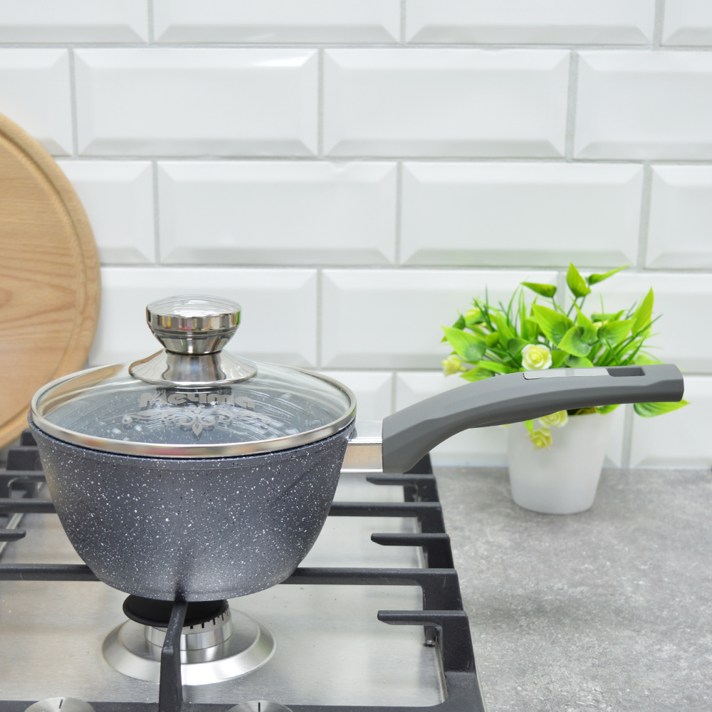 Ковш 1,2л Гранит с несъемной ручкой и стеклянной крышкой