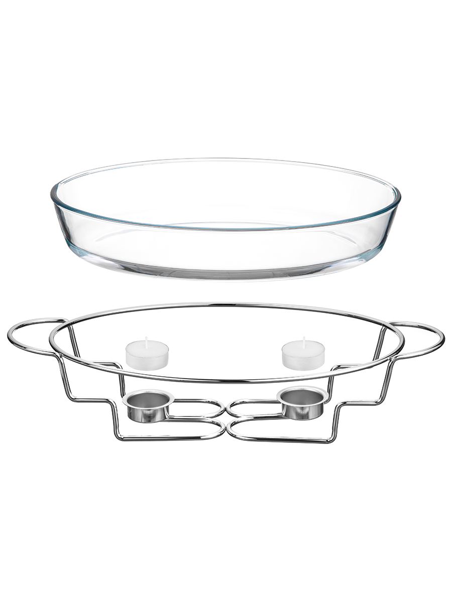 Мармит 3 л 43,5*24,5*19 см "Овальный" с крышкой из нержавеющей стали, на подставке, стекло