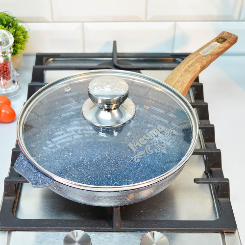 Сковорода 22см Premium mokko с несъемной ручкой и стеклянной крышкой
