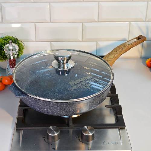 Сковорода 28см Premium mokko с несъемной ручкой и стеклянной крышкой