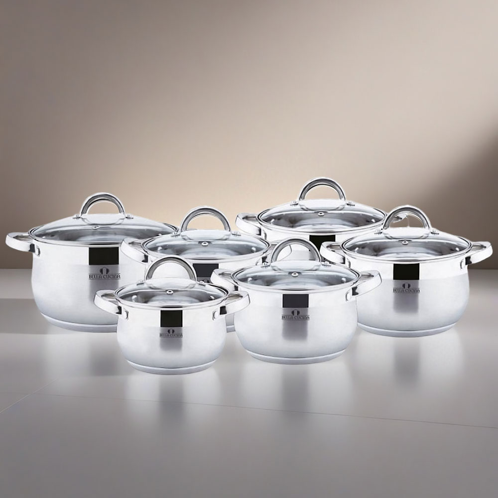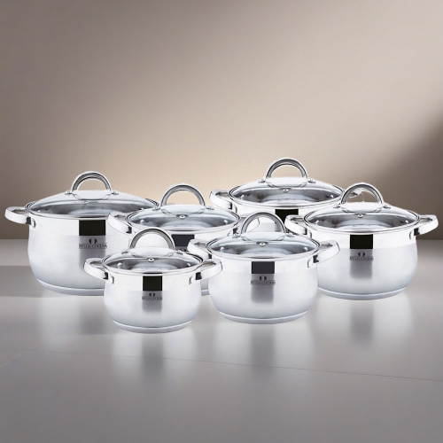 Набор кастрюль 6 предметов (2,1л, 2,9л, 2,9л, 3,9л, 3,9л, 6,6л) нерж Bella Cucina BC-2087