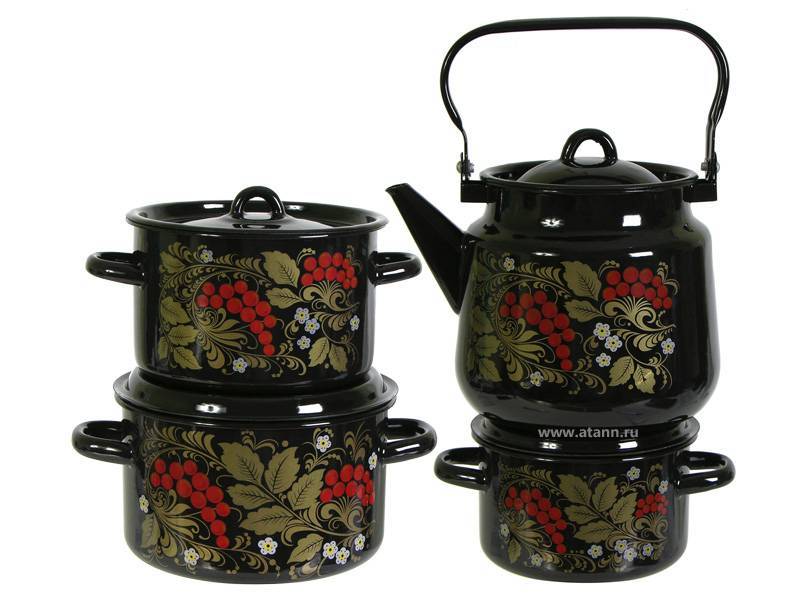 Набор кастрюль "Рябина" черная с красной тонировкой 24413