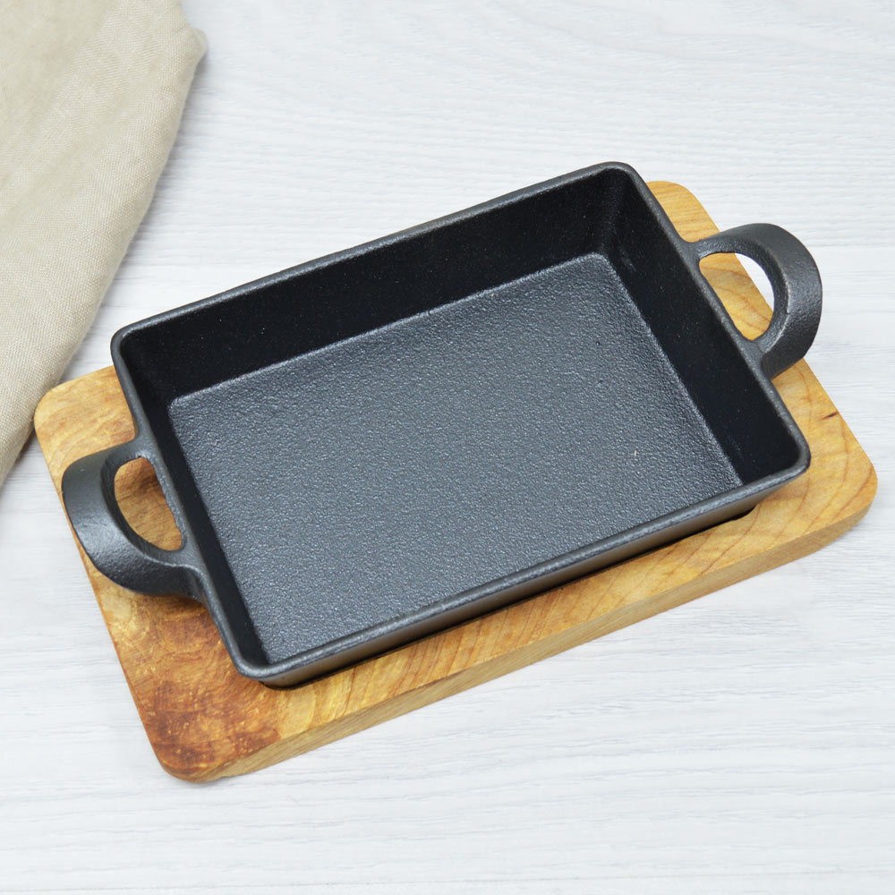 Сковорода 16*11,5см чугунная с деревянной подставкой МВ 26799Сковорода изготовлена из чугуна, традиционного высокопрочного и экологически чистого материала. С такой сковородой вы всегда будете готовить вкусную и полезную пищу. Также у сковороды есть деревянная подставка с углублением для сковороды.Известно, что пища, приготовленная в чугунной посуде, сохраняет свои вкусовые качества, и благодаря экологической чистоте материала, не может нанести вред здоровью человека. Приготовленное блюдо можно подавать на стол прямо в сковороде на подставке.Подходит для всех типов плит, в том числе индукционных.Размер сковороды - 16х11,5 см.Заключаем договора по 44 ФЗ, 223 ФЗ