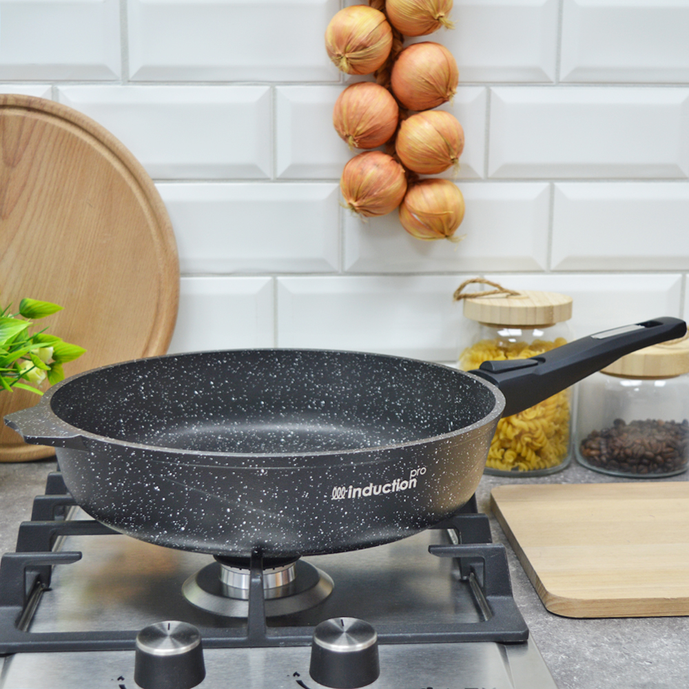 Сковорода 28см Гранит black Induction Pro со съемной ручкой Сверхпрочное покрытие отличается особой износостойкостью и повышенными антипригарными свойствами.Ресурс более 12 000 циклов.Литой толстостенный корпус не подвержен деформации, а утолщенное дно позволяет равномерно распределить тепло по всей поверхности.Моментальный нагрев благодаря сплошному индукционному диску.Съемная ручка позволяет компактно хранить сковороду.Диаметр - 28 см.Заключаем договора по 44 ФЗ, 223 ФЗ