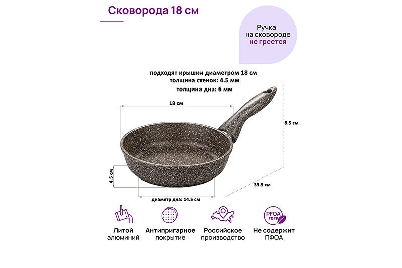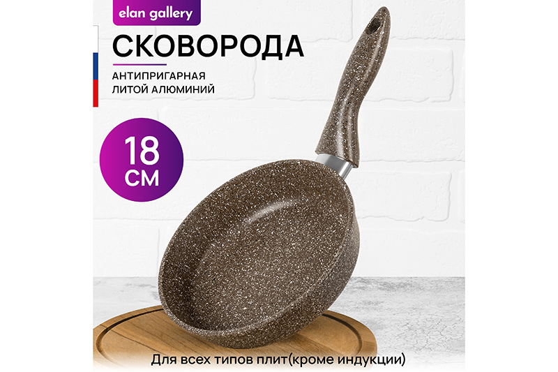 Сковорода глубокая 18 см ГАРМОНИЯ ВКУСА "Коричневый опал" без крышки, н/р, 33,5*19*8,5 см