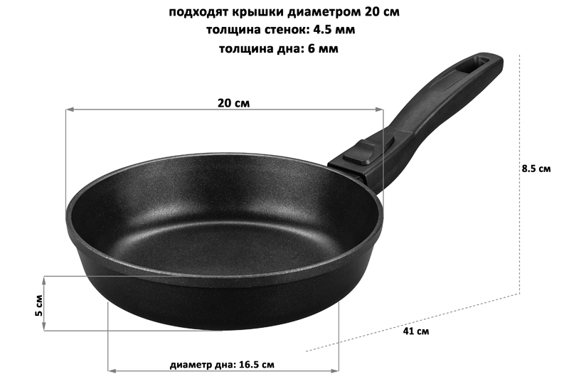 Сковорода глубокая 20 см ГАРМОНИЯ ВКУСА "Черный Оникс" без крышки, с/р, 41*21*8,5 см