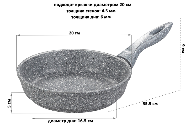 Сковорода глубокая 20 см ГАРМОНИЯ ВКУСА "Серый мрамор" без крышки, н/р, 35,5*21*9 см