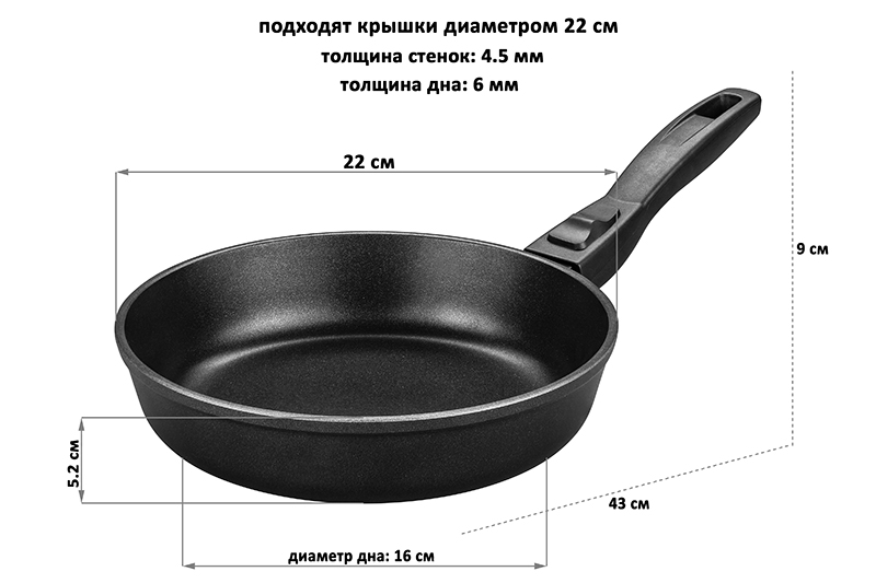 Сковорода глубокая 22 см ГАРМОНИЯ ВКУСА "Черный Оникс" без крышки, с/р, 43*23*9 см