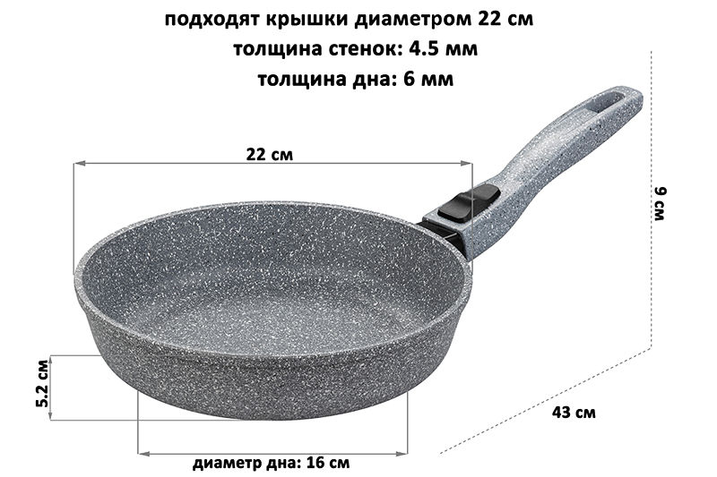 Сковорода глубокая 22 см ГАРМОНИЯ ВКУСА "Серый мрамор" без крышки, с/р, 43*23*9 см