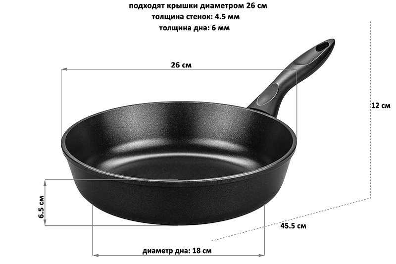 Сковорода глубокая 26 см ГАРМОНИЯ ВКУСА "Черный Оникс" без крышки, н/р, 45,5*27*12 см