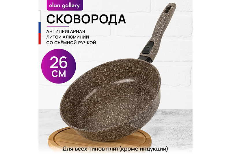 Сковорода глубокая 26 см ГАРМОНИЯ ВКУСА "Коричневый опал" без крышки, с/р, 47*27*10,5 см