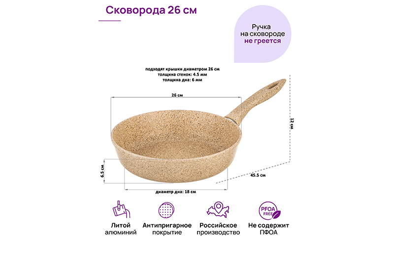 Сковорода глубокая 26 см ГАРМОНИЯ ВКУСА "Медовый гранит" без крышки, н/р, 45,5*27*12 см
