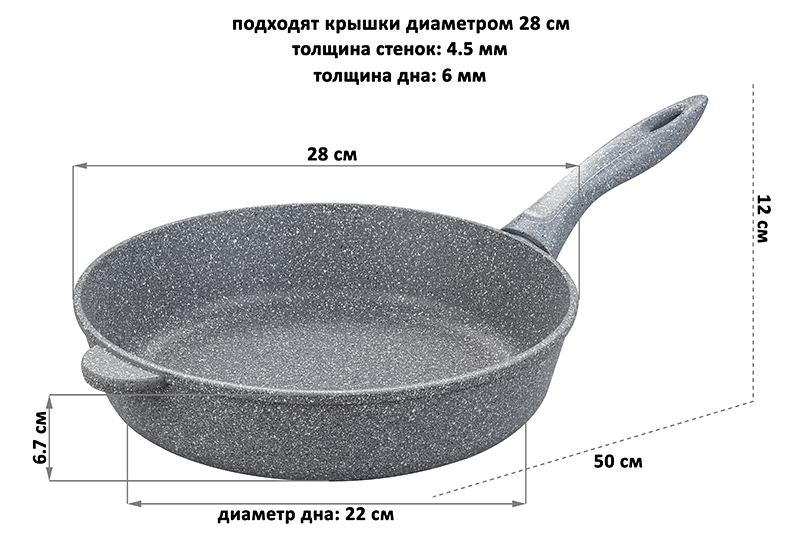 Сковорода глубокая 28 см ГАРМОНИЯ ВКУСА "Серый мрамор" без крышки, н/р, 50*29*12 см