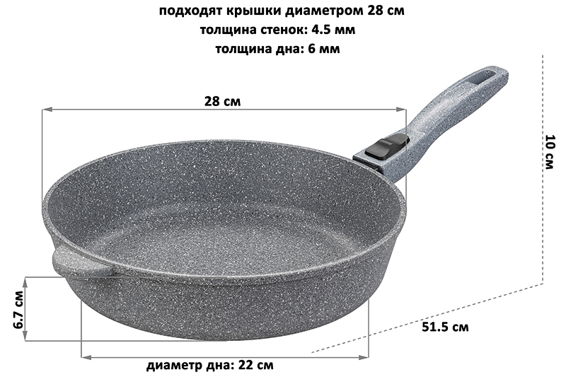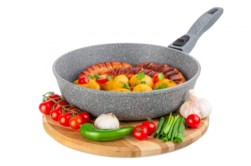 Сковорода глубокая 28 см ГАРМОНИЯ ВКУСА "Серый мрамор" без крышки, с/р, 51,5*29*10 см