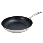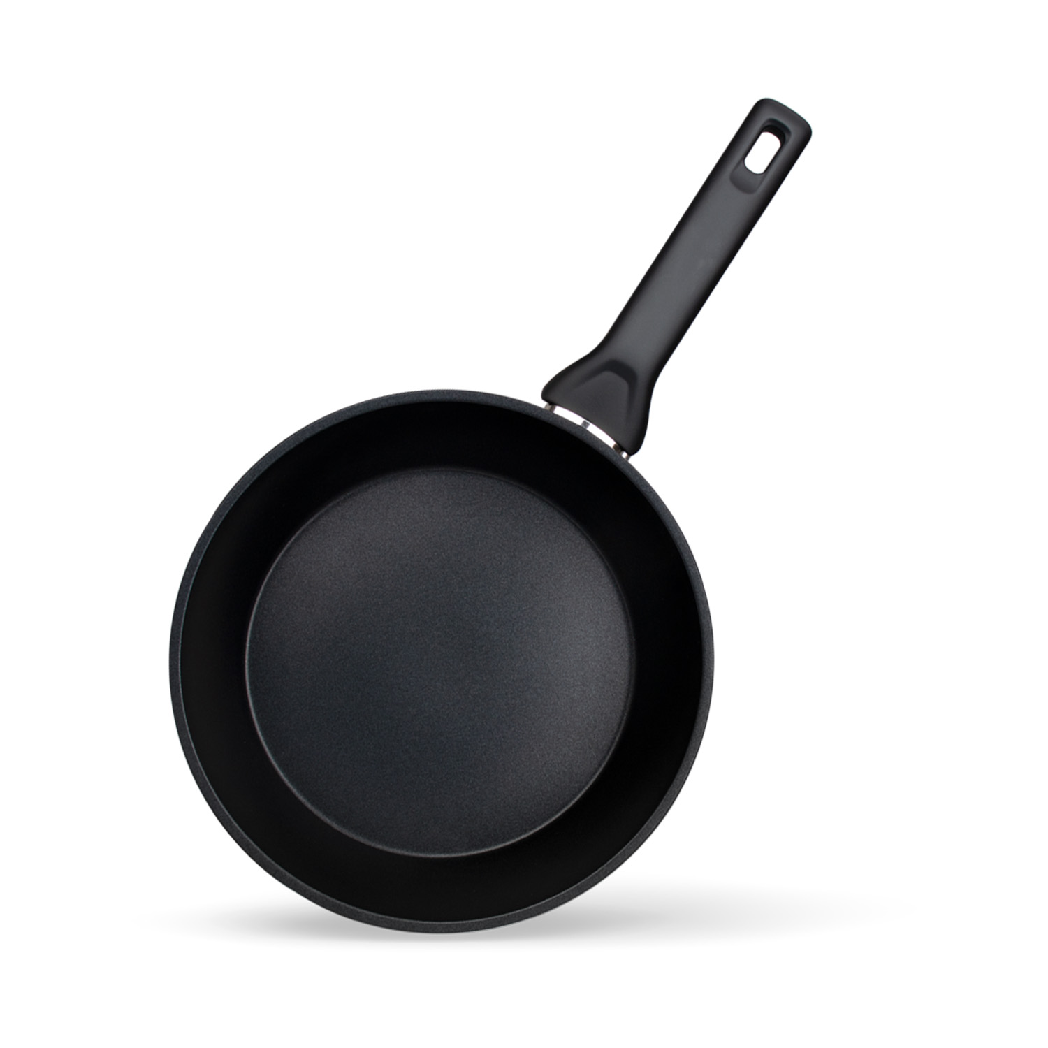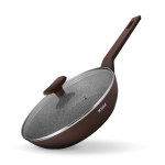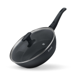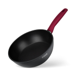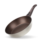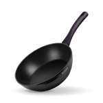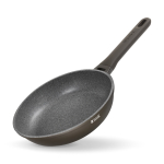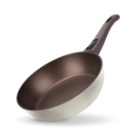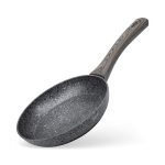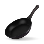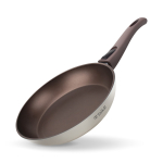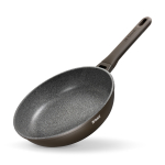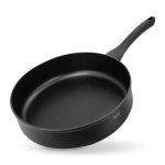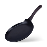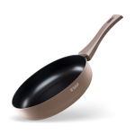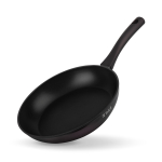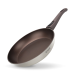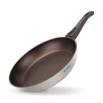 Антипригарное покрытие не содержит PFOA. Бакелитовая ручка с soft-touch покрытием не нагревается при использовании конфорки, не превышающей диаметр дна сковороды.