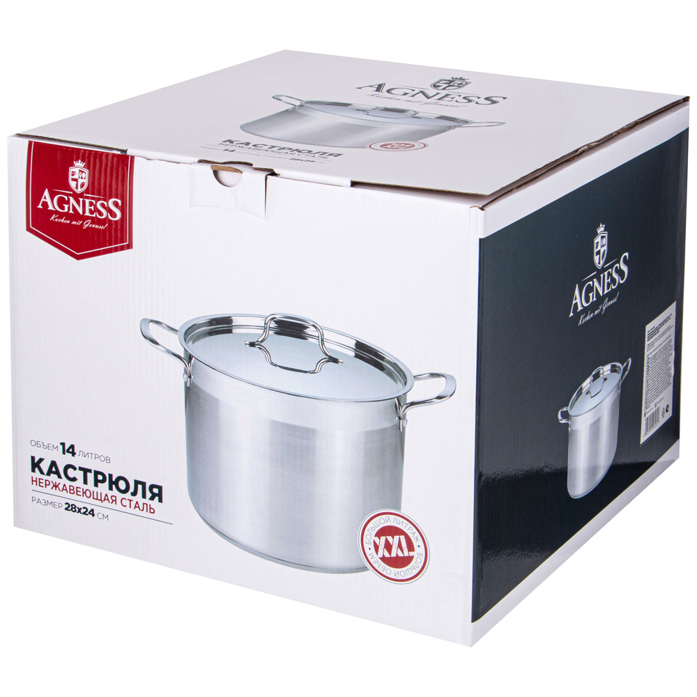 КАСТРЮЛЯ AGNESS 28X24 14 Л ВЫСОКОКАЧЕСТВЕННАЯ НЕРЖ СТАЛЬ 18/10 ИНДУКЦИОННОЕ ДНО