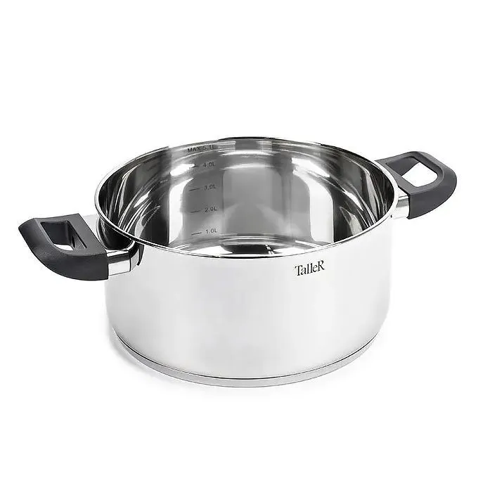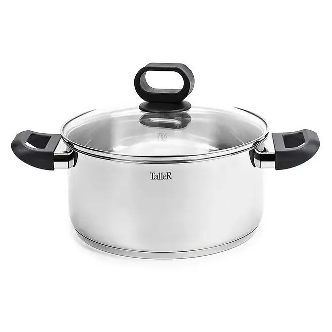 Кастрюля из нержавеющей стали TalleR TR-11009 «Тиана» 3,2 л Размеры: 20 х 10,5 см (диаметр х высота без крышки). Кастрюля выполнена из нержавеющей стали 18/10. Капсулированное дно для лучшего распределения тепла. Толстое дно - 4,5 мм. Полировка внешняя - зеркальная, внутренняя - зеркальная. Есть отметки литража. Крышка из жаропрочного стекла со стальным ободом с отверстием для выхода пара. Бакелитовые ручки устойчивы к нагреванию. Ручки на кастрюле и на крышке с удобными отверстиями для захвата. Подходит для всех типов плит (включая индукционную).Нельзя использовать в духовом шкафу. Пригодна для мойки в посудомоечной машине.