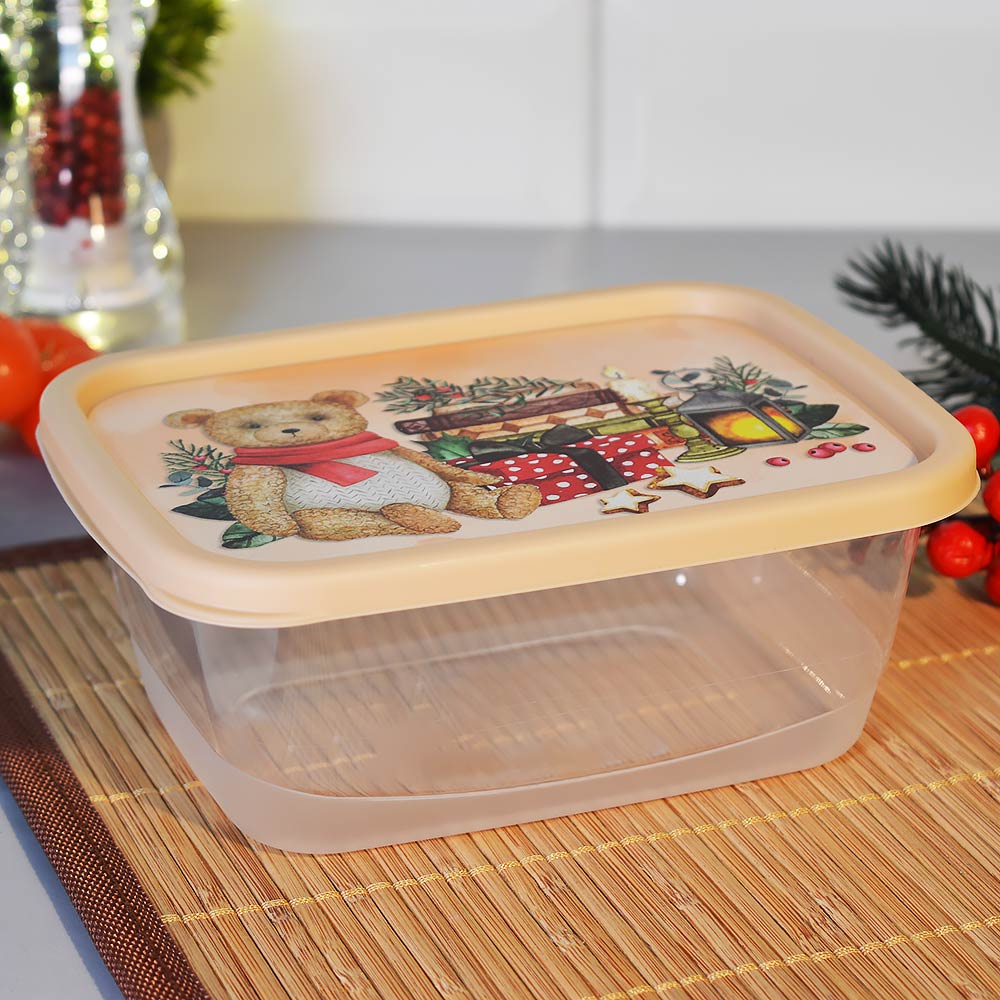 Контейнер для продуктов 0,85л прямоугольный "Игрушки", бежевый