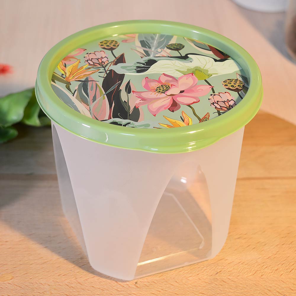 Контейнер для продуктов 1л круглый с декором, зеленый