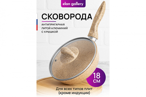 Ковш Elan Gallery "Медовый гранит" из серии "Гармония вкуса" объемом 1,2 литра с крышкой равномерно разогревается и распределяет тепло таким образом, что продукты в нем остаются сочными и сохраняют все свои полезные и вкусовые свойства. Диаметр крышки – 16 см, диаметр дна – 10 см. Ковш выполнен из толстостенного литого алюминия и имеет ультрапрочное двухслойное антипригарное покрытие Cookmark. Покрытие устойчиво к царапинам и износу, полностью безопасно для здоровья и не содержит PFOA или других вредных веществ. Выполнен в стильном дизайне, имитирующим гранит. Плотная крышка изготовлена из жаропрочного стекла и имеет пароотвод. Удобная ручка обеспечивает возможность быстрой подачи приготовленной пищи на стол. Идеально подойдет для варки каши на завтрак. Эксплуатация: не нагревать без продуктов. Дайте посуде остыть, прежде чем помещать ее в воду. Использовать только деревянные и силиконовые приборы. Не мыть абразивными или щелочными моющими средствами. Использовать в посудомоечной машине только в режиме "Эко" с применением средств, не содержащих щелочи. Подходит для всех типов плит, кроме индукционных. Ковш станет идеальным подарком для женщин и придаст процессу приготовления пищи новый уровень комфорта. Подарите такую универсальную вещь маме, подруге, сестре или тёте. Хороший ковшик – мечта любой хозяйки! В серии "Гармония вкуса" вы найдёте сковороды, кастрюли, блинницы, казаны и жаровни. Соберите набор для вашей кухни в едином стиле! /