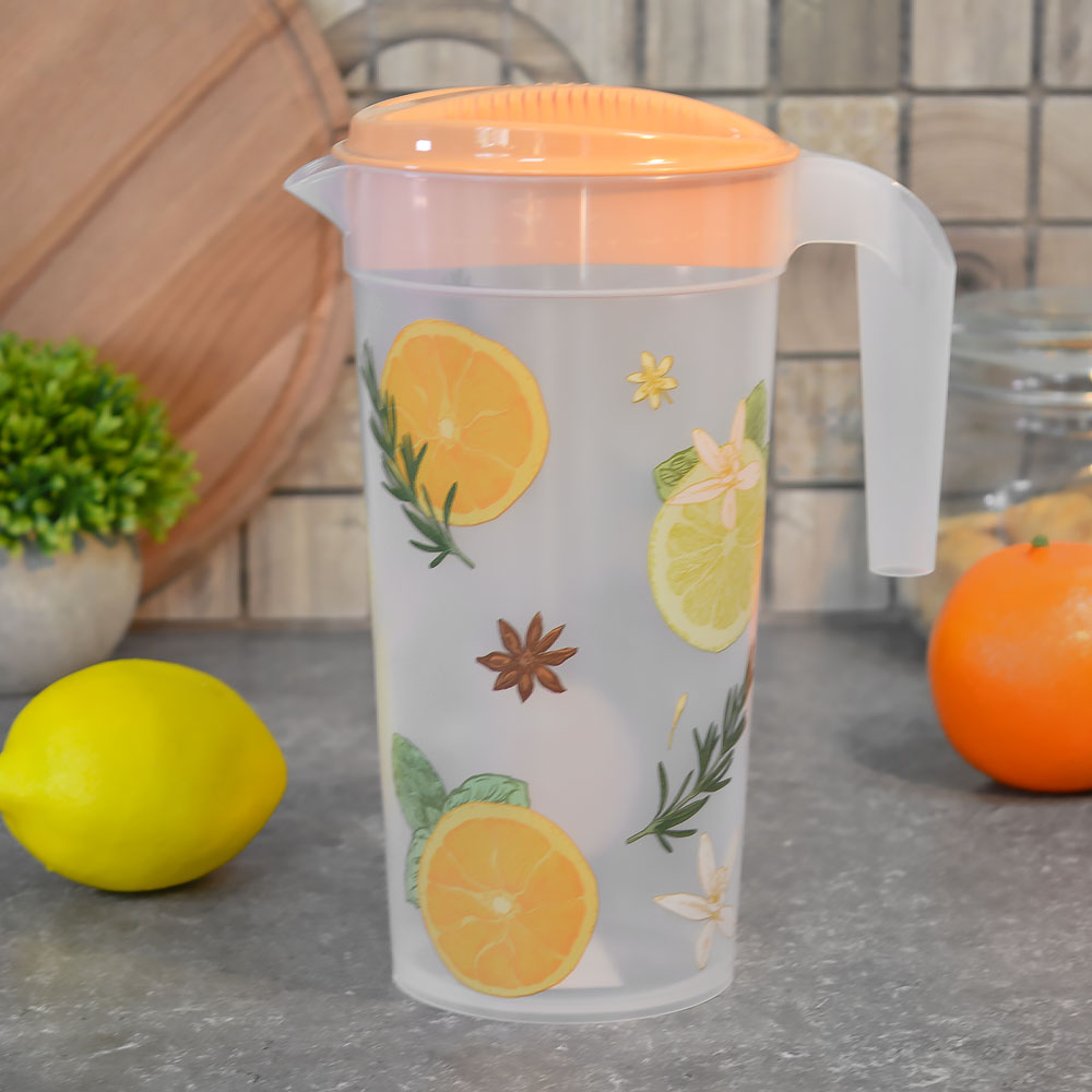 Кувшин 1,5л с крышкой, с декором, оранжевый